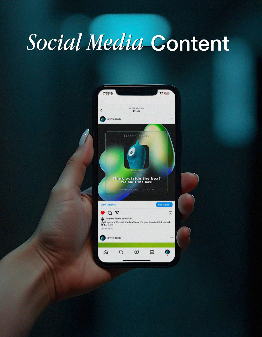We specialize in branding, graphic design, marketing strategy, websites, 3D animations, CGI, product design and more. Whether you need a full brand identity, a custom website, or high-end visual content, we’ve got you covered.