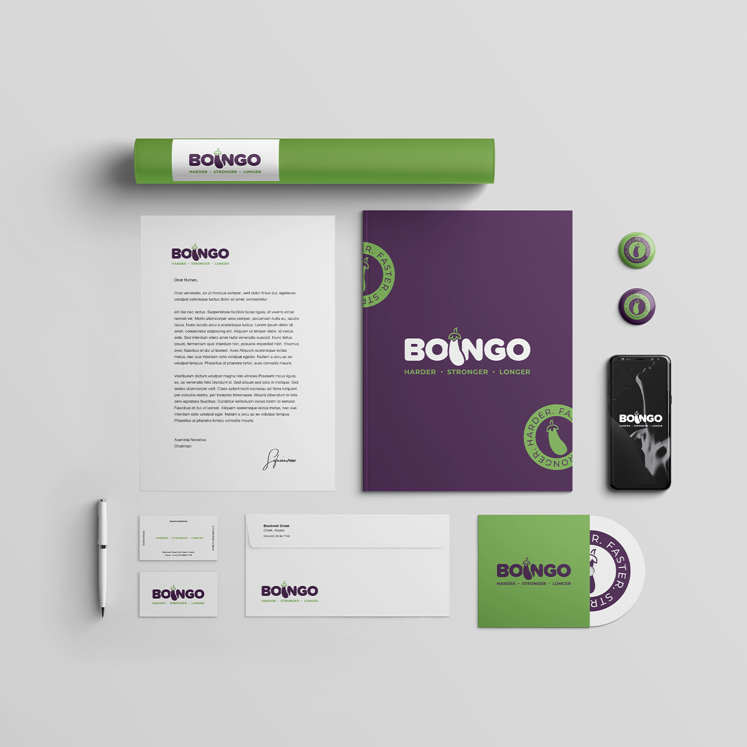 • Mockups showcasing how your logo will look in real-life applications (the “look and feel”).